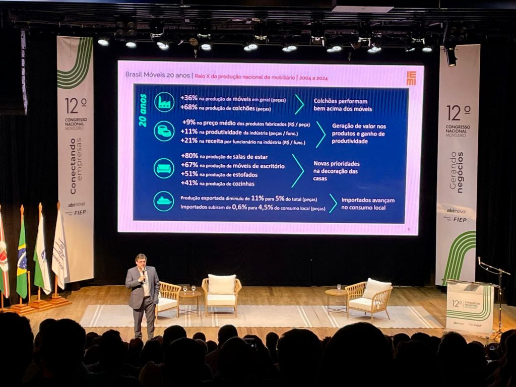 O primeiro dia de palestras, o 12º Congresso Nacional Moveleiro começou com o presidente da Abimóvel e vice-presidente da Fiep, Irineu Munhoz, destacou a importância do setor moveleiro na geração de empregos e promoção da inovação para além da fabricação dos produtos.