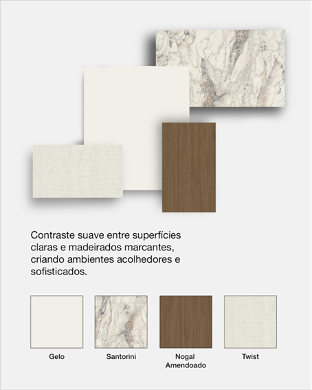 A coleção explora padrões neutras e texturas naturais, mas em tonalidades que evocam emoção, autenticidade e presença. Seu conceito central, “em cada nuance, essências singulares”, reforça a ideia de que cor é linguagem, memória e identidade. É justamente nessa interseção entre superfície e expressão que até mesmo uma cor neutra encontra o seu papel.
