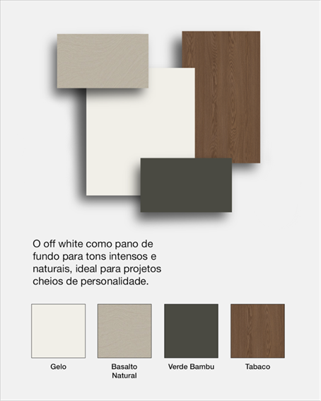 Em um contexto em que a cor se torna cada vez mais uma forma de expressão pessoal, a cor eleita pela Pantone atua como ponto de partida: é um branco que não anula, mas realça, um off white que oferece estrutura para contrastes, harmonias e experimentações, como as propostas pela Formica® abaixo.