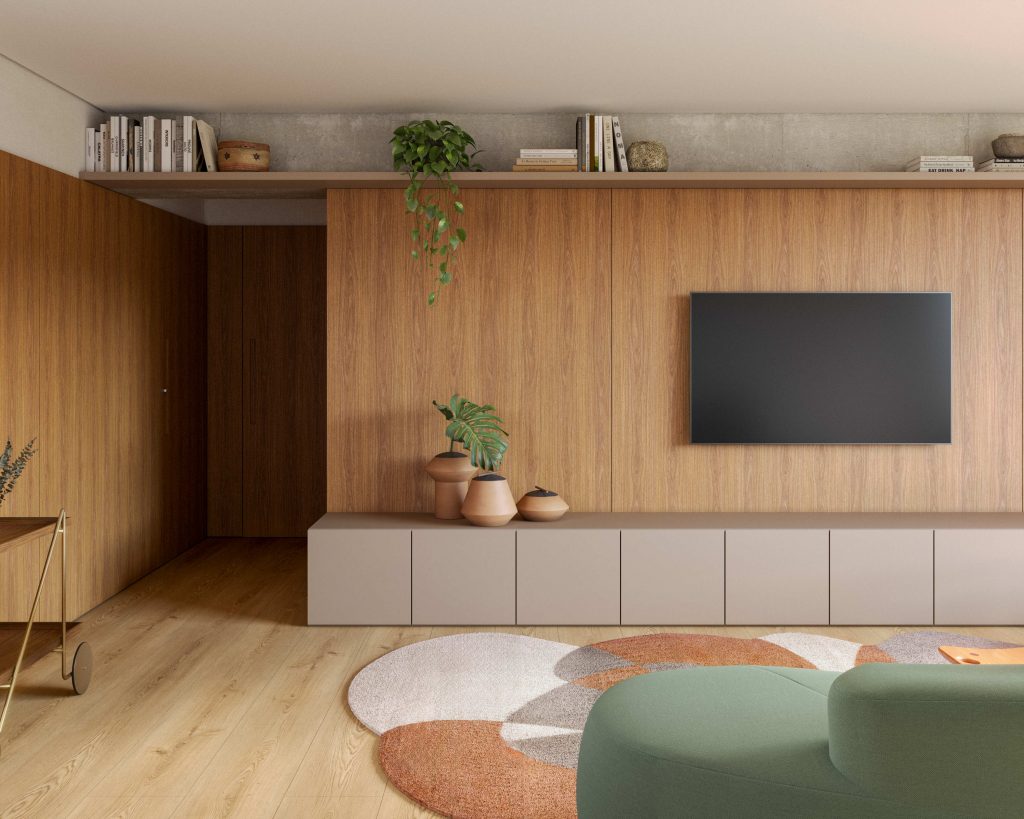 “A percepção de conforto vai além do termômetro. Ambientes com superfícies de madeira transmitem calor visual e sensação de acolhimento, o que impacta diretamente no bem-estar”, explica Patricia Cisternas, gerente de marketing da Duratex. “Painéis de MDF e MDP, quando bem especificados, contribuem para criar espaços mais equilibrados, não só visualmente, mas também sensorialmente.”