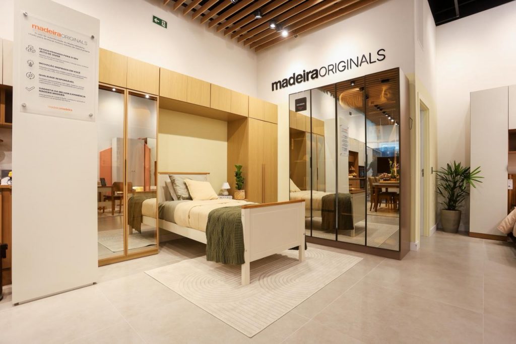Além disso, a marca própria Madeira Originals ganha destaque na composição dos ambientes, reforçando a proposta de design e funcionalidade da empresa. O atendimento também é personalizado, com áreas dedicadas à consultoria e suporte técnico.