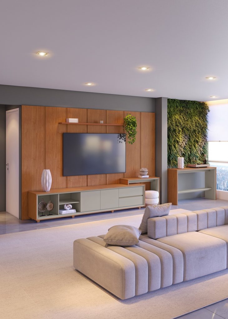 No varejo, a ambientação bem planejada é determinante. “A recomendação é sempre criar ambientações completas, mostrando o rack, o painel e os módulos de forma integrada, como se fosse a sala real de um cliente. Isso ajuda o consumidor a visualizar o produto no seu dia a dia e aumenta as chances de uma venda casada. Trabalhar iluminação direcionada, composições com objetos decorativos e espaço de circulação confortável também é essencial. Além disso, sugerimos que o lojista estimule o atendimento consultivo, apresentando as opções de modulação e expansão.”