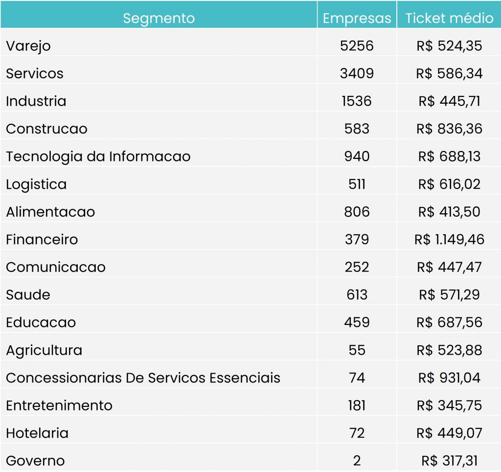 Ticket médio é maior no setor financeiro